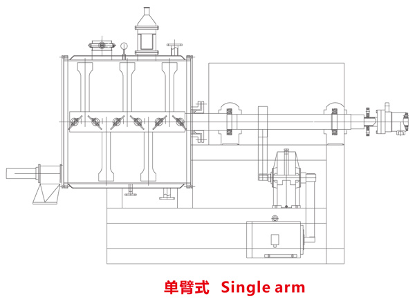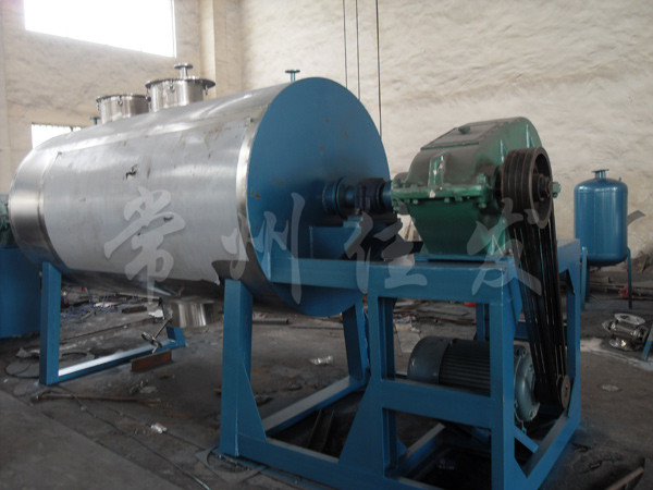 本機是一種新型臥式間歇式真空干燥設備,濕物料經(jīng)傳導蒸發(fā),帶有刮板攪拌器不斷清除熱面上的物料,并在容器內(nèi)推移形成循環(huán)流,水份蒸發(fā)后由真空泵抽出。