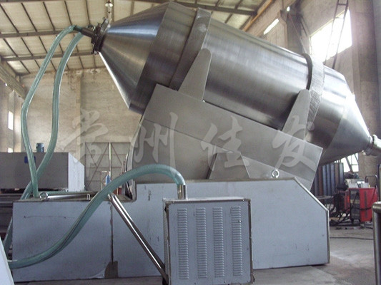 本機(jī)混合筒在傳動的同時(shí)又參與擺動,使筒中物料得以充分混合,混合筒的出料帶有螺旋葉片,使該機(jī)具有混合迅速,混合量大,出料便捷等特點(diǎn)。