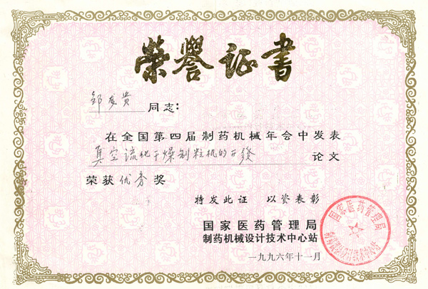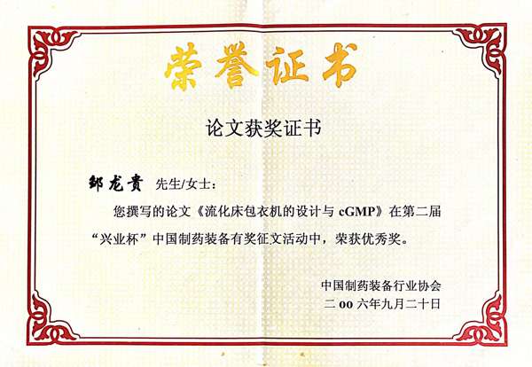 獲獎(jiǎng)證書